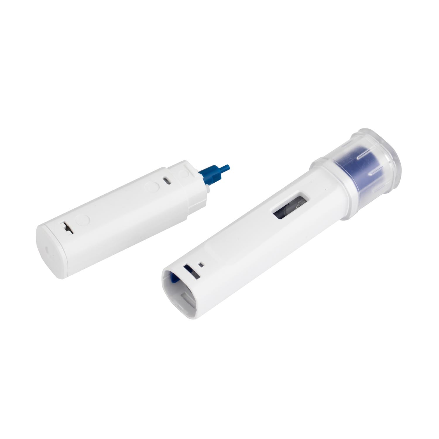 تم تصميم قلم الحقن هذا بغطاء أبيض نظيف من الدرجة الطبية ، مقترنًا بثلاثة ألوان مميزة للمكبس (الأزرق والأخضر والبرتقالي) لتسهيل التمييز بين الأدوية. يشتمل الجهاز على غطاء قفل شفاف يعمل على تثبيت PFS أثناء الاستخدام، مما يمنع الانحناء أو الانزلاق العرضي.