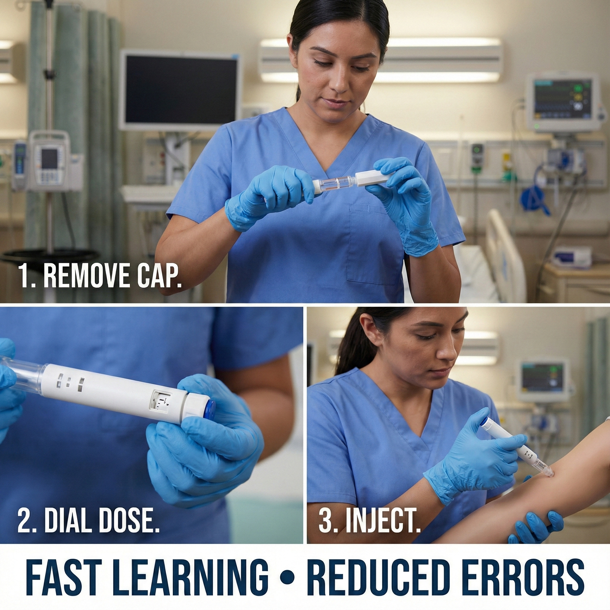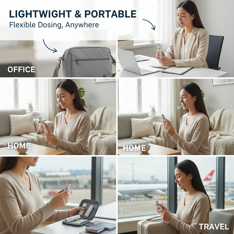 تصميم خفيف الوزن ، على غرار القلم مع آلية الحقن السلس يقلل من قلق الحقن.